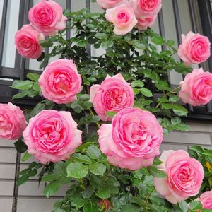 つるバラさんたち ①ピエールドロンサール 美しいピエールさん 雨にも打たれてそろそろ終わりそうです 今年の花は少ないけどうっとり🥰 ②花見川 挿し木したのも大きくなってきました ピンクとはちょっと違うかわいい色です ③アンジェラ 挿し木してから150cmくらいになりました 親株は裏庭に地植えしてあります ④アイスバーグ(多分) 少しずつかわいく咲いてきました 数年前30cmくらいの枝が100円でした