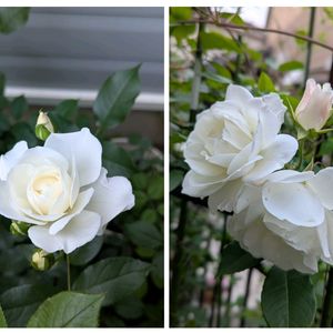 左がアイスバーグ 右はつるアイスバーグ 朝一番の純白の花はいいですね😊