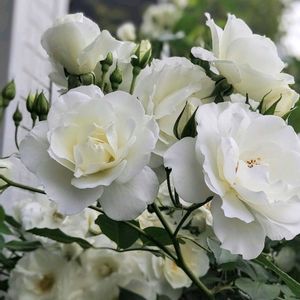 つるバラのアイスバーグが今年も咲き始めました。 住宅密集地の日陰庭なので、花数や蕾は数少ないですが、今年もお顔が見れて嬉しいです。