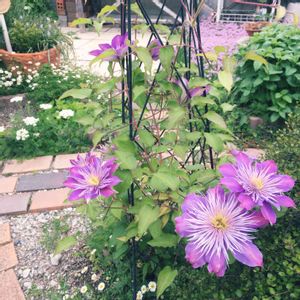 クレマチス クリスタルファウンテンが開き始めました♪ フェアリーブルーとも言うんですね(o^^o)