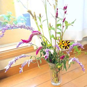 ハーブボランティアで、お土産にお花をいただきました🔅 ケイトウは何回かドライにしてみたのですが、鮮やかな色はそのままに、楽しませてくれます✨