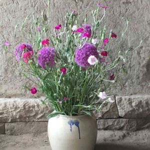 咲き終わって刈り取った花や取った草。毎日.この一輪車で何度も運びます。 スカビオサ.風に揺れている庭です。