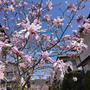 こんにちは🤗 我が家の横は遊歩道に成っていて、川西市がピンクのシデコブシを植栽。 青空に向かって咲いていますよ☺️ とても綺麗ですよ