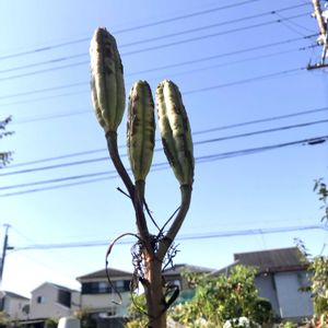 今晩は😃 pic は14:30 今年もこの時期霜にやられる前に,咲いてくれた キミガヨラン❣️ 何本も蕾の枝(⁉︎)が出てるけど、もうすぐ霜の季節だからこれだけだな・・ 😊