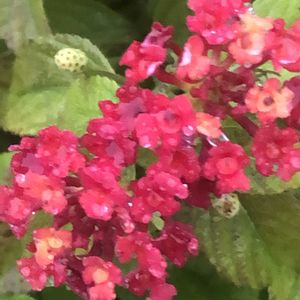 こんにち・今晩は😃 雨の中、今撮ってきたよ 今日のお花 ランタナ❣️さん 暑い内は、黄色も目立っていたのに・・ランタナらしくなくなっちゃった😅 この株3年目、2つ植えたけどもう一つは冬越し出来なかった。頑張って今年も冬越ししてね🙏 😊