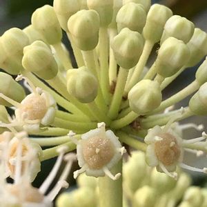 ヤツデのお花✩.*˚② 全集中で、良くよ〜く見てみて〜L👀K !! 真ん中のちょい下の開いたお花♡お顔があるでしょ〜😆🤣🤣目、鼻、口も!! これに気づいたら、もうおかしくて可愛くてꉂꉂ(ᵔᗜᵔ*)あははは! お顔から手も足も出てるでしょ🤣🤣🤣 私ひとり、ツボにハマったかな(´▽`*)アハハ