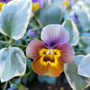 顔っぽいビオラを発見(^^*) よく見ると(`Д´ )怒った顔みたい😄