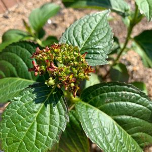 【2021.4.24.】今年で3年目🌱紫陽花ケイコピンクに蕾が出来ました❗ ✤1年目:見事に咲いたケイコピンクを主人がプレゼントしてくれました🥰 もともと紫陽花が大好きで園芸店にこの時期は足繁く通い全部は買えないので目の保養をしながら楽しんでいます☺️ 「また咲かせたい❗」と意気込み不慣れながら世話を続けなんとか冬越し😊 ✤2年目:昨年は❤の様に咲いたはいいものの、暑さで早く花が終わってしまい、またうどん粉病にもかかり葉っぱを切りに切って、次は咲かないな😅と諦めながらも、冬は防寒対策をしてこまめに枯れてないかチェックもしながらなんとか冬越し。 ✤3年目:昨年新居ができて小さいながらもガーデニングスポットを作ることが出来たので、紫陽花をメインに少し前に地植えしました。 無事に根が付いたようで葉っぱはなんだか赤いですが蕾が1つ🥺🥺🥺 今年は諦めてたので猛烈に嬉しいです✨ 買った時の職人技の咲き誇りは出来ませんがなんとか枯れずに3年目も咲きそうなご様子です🥰 また直射日光にやられないように日除けを作ってあげないと🤔と考えるのが最近の悩みです😳 今年はどのように咲いてくれるのか楽しみで仕方がないです🥰