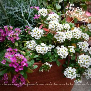 寄せ植えの中のアリッサム🌼 お買い得な子でしたが、モリモリにお花が復活してきました!(^^)!ワーイ♡ 小さなお花の集合体がコロンと丸いフォルムを作ってそれが可愛いな💞 ピンクのアリッサムもモリモリになってくれるかな(*^^*)タノシミ♬