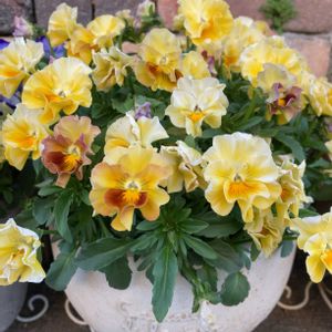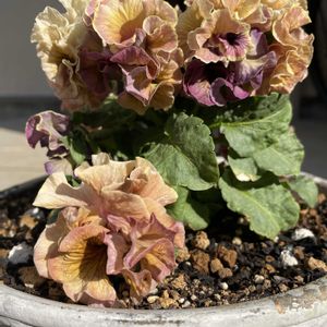 今咲いているパンビオさんたちです🤗♪ 1️⃣ミルフルアンティークフリル 花付き良い、素敵な花色、ふりふりで可愛い、お手頃価格❣️来季もお迎えします😄 2️⃣左)ばらいろももか 右)よく咲くスミレラズベリー ほとんど見分けがつきません💧 イエロービーコンとスーパーアリッサム アリッサムは弱った見切り品だったのに…すごく元気に💪😅 3️⃣名無さんですが色白美人さん♪ 4️⃣2色入りビオラとよく咲くスミレソーダ白いビオラが押されてます💦