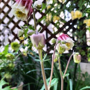 もう…夏?🤣 さすがに、仕事から帰ってきたら暑くて半袖になりました☀ 可愛い子が咲きました🥰 オダマキ ピンクペチコート💖 これは、間違いなくお友達にいただいた花🍀だよね〜!Mさん😆 ピンクの中にフリフリな白いペチコートが可愛くて〜💕 今年も花を咲かせてくれました✨ 後ろの黄色のモッコウバラも一気に開花💛 お花の季節がやってきましたね〜☺️