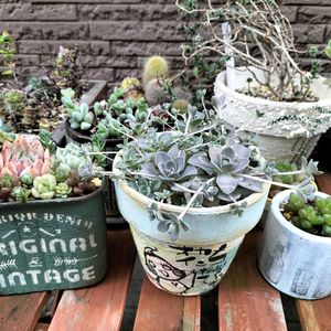 みどりのまとめでしいたけ投稿していたら…毎日の投稿しているつもりになってました😅 4/11多肉とみどりのマルシェ なばなの里へ行ってきました🍀 可愛い多肉や鉢や雑貨いっぱいで見ているだけで楽しい💕 sweet basketさんの所でステンシルWSをして、hanaさんのあみあみ鉢に、可愛いピック🏠️🐔🐤を使い寄せ植えしました☺️ ステンシルした缶はお家で寄せ植え🌿 初めてお迎えした赤いアエオニウムはnikonomaさんのスチパンに💕 多肉ファームでお迎えした多肉 あれ?コロンコロンだった多肉が…ちょっとパッカーン🥲 コロンコロンキープは難しいな💦 穏やかな春、暑い夏はもう少し待ってね〜🥰
