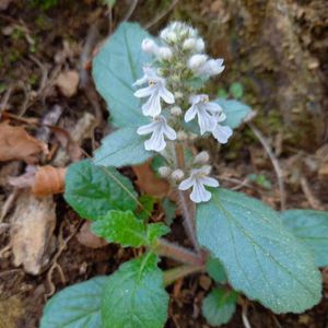 そして ようやく見つけました😊 高尾山には約11種類のスミレが 生息していると聞いてましたが、 このスミレは ひときわ真っ白な花弁をつけ 凛と咲いていました💕 他のスミレとの見分け方。 葉っぱに特徴があり、 表がやや紫っぽく 裏が鮮やかなみどり色なんです。