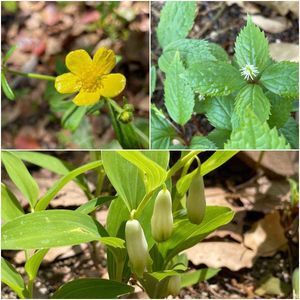 🌱山野草・三種 左上 ヒキノカサ 右上 ヒトリシズカ 下 アマドコロ 🌼ヒキノカサ キンポウゲ科 キンポウゲ属 絶滅危惧種 金属的な光沢があり本当にお花かしらと思いました。