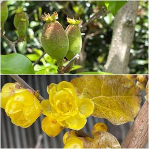 🌱ロウバイ (実と花) ロウバイの実💚いつも可愛くってつい撮ってしまいます。 まるで小鳥がちょこんと 止まっている様に見えるんです。 実💚は 4月11日撮影 花🌼は 1月13日撮影