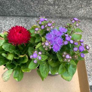 昨年は紫色のアゲラタムを冬越しさせ、10株以上株分けでき、花壇に地植えにしたり寄せ植えに使えたので、今年は白いアゲラタムを購入‼︎とりあえず寄せ植えに。