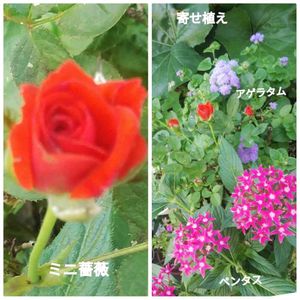 寄せ植えのアゲラタム ペンタスは今は1輪です。