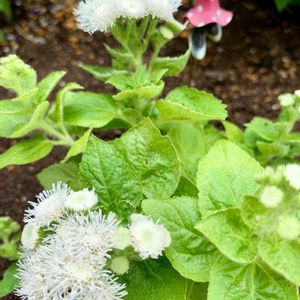 先ほどは、 👍️「名前を教えて」🙋 のタグを付けた所、 あっ‼️という間に複数のご回答を頂いてありがとうございました。🤗 《アゲラタム》の色違いらしき(白)も、隣に咲いてましたので、一緒にご覧下さいね。💮 一緒にご覧下さいね。
