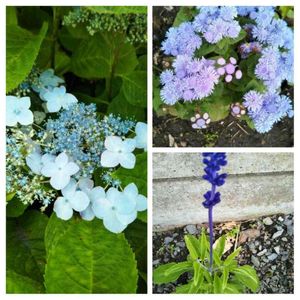 8月9日日曜日 おはようございます。 今週も、宜しくお願いします(=^・・^=) 近くの🏡の庭に咲いていました。 紫陽花さん アゲラタムさん ブルーサルビアさん です。 (*´σー`)エヘヘ♥ˎˊ˗ (*ᴗˬᴗ)⁾⁾⁾