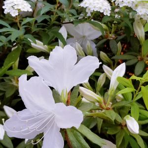 初夏のような空の下。 純白のお花達がとても清楚に見えました。 .゚+.(´∀`*).+゚.キラキラ 2019.4.21 目黒庭園美術館入口にて