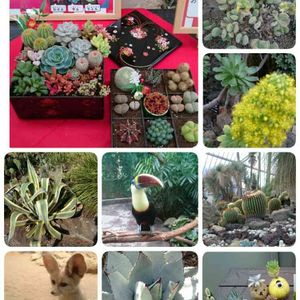 シャボテン公園、楽しすぎました(*^^*) アガベもサボテンもでかい❗ 個人的なお気に入りは、右上の、お花を咲かせた熊🐻ちゃん❤ おせちに見立てた多肉の寄せ植えも素敵でしたー💓