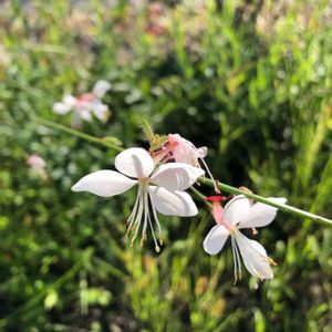 シャボテン公園の駐車場にて。 一般的なお庭草花の中でも、 丈夫さと花期の長さと花付きの良さが素晴らしいために とても好きなガウラという花を見つけました。 まるで私のように白く美しいお花です🌸