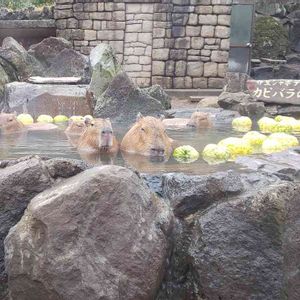 シャボテン動物公園の名物❗️ カピバラの露天風呂😌♨️ ゆず湯だそうです。