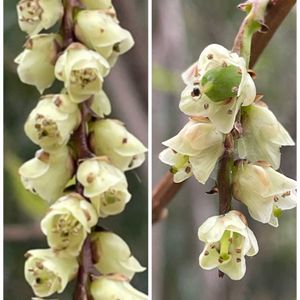 キブシ 玉簾か簪のようにビラビラと林の縁で目立っている♪雌花は分かりやすいが、雄花なのか両性花なのか? 柱頭と8本のヤクの高さが同じに見えるし、雌花序や両性花序の玉簾は短いという説明からいえば、両性花かな(^.^) 雄株はどこじゃ~😆