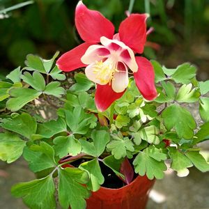 オダマキ 選挙投票の帰り道、もひとつの出会い✨ お花屋さんの前を通りかかったら…あら、素敵な色のオダマキが…😳 赤は初めてなので、この子を連れて帰ってきました😊 珍しく靴擦れしてしまい、痛くて痛くて😫…そんな時のちょっと嬉しい出会いでした🤭 (税込み88円😳)