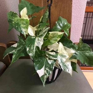これも緑花木センターから連れて帰ってきた、シンゴニウム・フレンチマーブルさん。 植え替えてあげたいんだけど、吊り鉢にしようか床に置こうか悩む〜( ´~` )*.゜