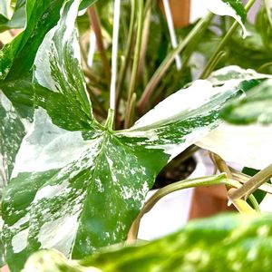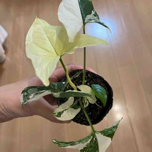 困った 大事にしている斑入りのシンゴニウム‘フレンチマーブル’が、このところ先祖返りの一途。 新葉が緑になってきているので、斑の綺麗な枝だけ集めて水栽培を経て鉢植えにしたんだけど、、、これも新葉に純白の斑が現れなくなってきた😭 もはやこれまでか orz