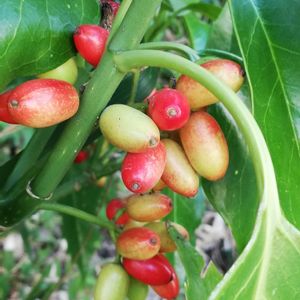 おはようございます😃 🐕🐾散歩で見る花🌸 半分青い❓😅 NHKの連ドラ❓😅 青木の実が半分熟れています😅