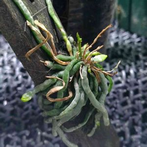 サンシャイン蘭展で購入した子達がチラホラ動き出してきました☆ この子は葉のない蘭として有名なクモランの類でtaeniophyllum obtusumとのことです(^^;) 新たな根が出てきたなーって思っていたら上部に花芽っぽいのがあがってきました❗ 上手く咲いてくれると良いな🐚