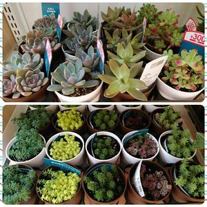 こんばんは🎶🎶 ちびっ子とドライブしてたら車が…😨💦💦 ディーラーに電話して走れるなら自宅まで帰宅してくださいっとの事で大きな公園を諦めて近くの公園で遊び回って~、お買い物🎵🎵 ダイソーのぞいたら初めて出会った300円多肉🙌🙌🙌 とダイソーセダム❗❗ 私は今回はスルーしたけど😄🎵🎵いよいよ多肉ちゃんが出回る季節か😂💕💕