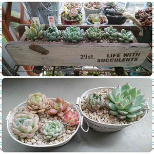 今日はホワイトデー🎶🎶 旦那さんに園芸店に連れてって貰ったよー!! そしてここにある苗全て買って貰っちゃったよー😝🎵🎵 嬉しくて花粉がマシになったので早速植え替え😆💕💕 上の木箱は茶色さんと色違い🙌🎵ガチャガチャだんご虫さんをどけて多肉ちゃんin😊✴ 良い感じ🎶❗ 下のはブリキ缶🎶100均🎵🎵 良い感じ😚💕💕💕 旦那さんありがとう😆🎵🎵🎵 ちなみにお昼海鮮丼おごって貰った✌✌✌