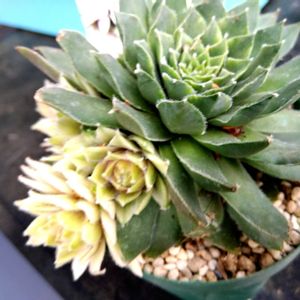 微もけが可愛い センペルビウム・バニラシフォンさん😻❤️🩷🤍💚 去年の夏のショックで相当枯らした…😿 と思って それでも諦めきれずに覆い被さってた茶色い枯れ葉を取り除いたら 中で小さくなって生きていたお嬢様方です😺 諦め無くて良かった😸✨
