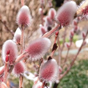 *アカメネコヤナギ(^. ̫ .^♡)੭ ふわふわ、モフモフ、ピンクの可愛いネコヤナギꔛ💗 道の駅でお土産に買った枝を挿し木してから10年以上