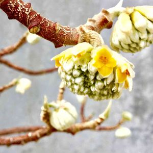 ミツマタの花 可愛いね 三叉?小枝が三方向に別れてる🤗 花と言うより蕾だね(๑>◡<๑)