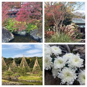 白鳥庭園 行ってきました 紅葉🍁 雪吊り ライトアップの為の 飾り付け お花を並べる作業していました 今日は作業日らしく 28日まで飾ってるから また完成したのを観に来て❗️ と言われました 行けるかなぁ〜