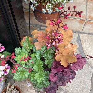 ヒューケラの寄せ植えが綺麗になり花芽も上がってきました ☆︎;.+*:゚+。.☆︎;.+*:゚+。.☆︎;.+*:゚+。.☆︎;.+*:゚+。.☆︎