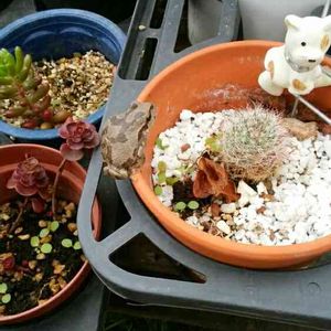 こちらも地味に増えてます 寄せ植えは難しいですね 配置のバランスがイマイチ分かりません ただ植え込んだだけな感じ…
