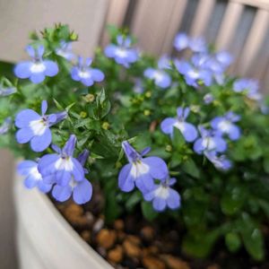 💙°₊·ˈ∗ロベリア°₊·ˈ∗💙 夏子 ブルーアイ 去年育てて挿し芽で冬越し、プランターいっぱいに咲きました。 冬越しも軒下でへっちゃら( ˘͈ ᵕ ˘͈ ) 挿し芽も容易なので水差ししておくだけで発根してくれます🌿
