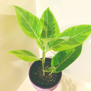100均観葉植物✨🌿✨ 水枯れさせてしまい、葉っぱを全部落としてしまったのですが… 復活してくれた〜❣️ フィカスの仲間だと思います。 斑入りの葉っぱ😃👍 特した気分🎵