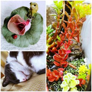 はちゅの日投稿2枚目🦎 寝落ち~(;˘ω˘)💦 日付け変わってしまった〰💧 →大好きなヤモリ缶🦎 玉椿と大型緑塔とクリたまちゃん♡♡♡ ↖妊婦ヤモリ🦎🥚🥚 2日ぶりに来たよ♡ ↘庭の🐸さん なぜか薄いグリーンになってた💚 もうひと踏ん張りグリーンになれんかなぁ~??