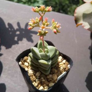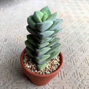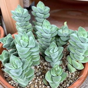 クラッスラ「紀ノ川」。 ホームセンターの多肉コーナーにて。陰に隠れるように置いてあったので、だいぶ徒長してました。 ぎゅっと育ってたいですが、今の時期だと難しいですよね😅