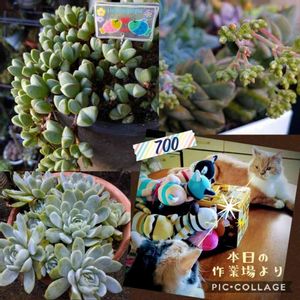 こちら全国2位の猛暑(38.4度)の中 700picに到達しました·····フェーン半端ないっす [エアコン]≡ ('、3_ヽ)_ コメントの返信またしても停滞させてしまって申し訳ありません ↖️トトの日も参加 タイヨウちゃんトトピックが優しく見守ってる真夏のシワった碧魚連もまたオツでしょう♪ ↗️水切れと暑さで多少ヘタってるけど咲き始めた紀ノ川 いつものをひとつ·····⬇ (」゚Д゚) クラッスラが好きだーーー! ↙️月影(エレガンス)も好きだーーー! ↘️700picだし、プレ企画しちゃおうと思ってソクニャン増産していたのですが、猫たちに阻まれ(𐤔言い訳)もうちょっとしたらやりますから(笑) えぇ、コメ返溜めてますけど… うちの猫たちとても仲が悪いので普段は同じテーブルにいる事など殆どありませぬ 寛いでる風を装ってますがバチバチ 700丁度にプレ企画出来なくても気にならないO型ですので、キチンとしたいタイプの方々をムズムズさせてゴメンナサイ