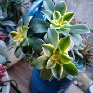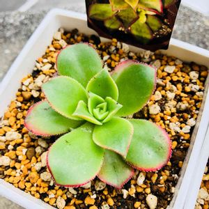 夕映え アエオニウム属 縁取りが可愛いなぁ~🎵 リメ缶にデコパ💕