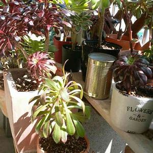 こんにちは。我が家の狭いベランダのアエオニウムのコーナーです。黒法師が 大好きでいつの間にかこんなになってしまいました。😅