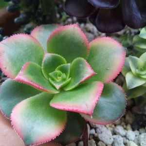 2017-7/12 ☀️ ~~~ヾ(^∇^)おはよー♪ かろうじて無事なアエオニウム達 お一人様で放任は元気٩(๑❛ᴗ❛๑)۶ キウイ:夕映えは一緒⁉️ ベランダ「キウイ」は紅葉さめて緑ん💚 玄関横軒下の「夕映え」はキレイなまま❤️ ❤︎ キウイ ❤︎ 真っ黒法師 ❤︎ ❤︎ 夕映え ❤︎ ❤︎ 小人祭 ❤︎ 伊達法師 ❤︎