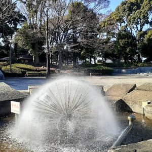 公園の噴水 寒空の下 半円の噴水に心が踊る